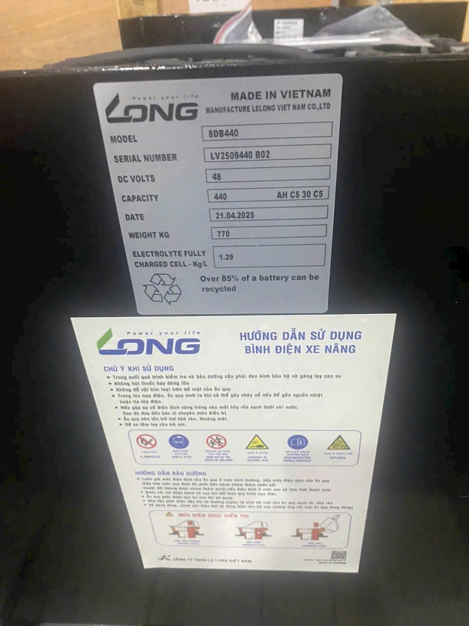 | Loại bình | Bình điện axit–chì cho xe nâng điện |